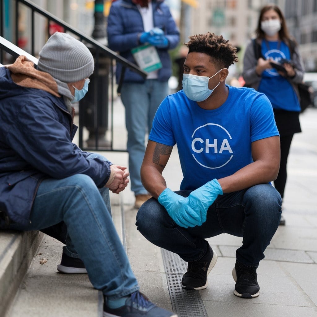 The Big Blue Umbrella Non-Profit is home to the nation’s first corps of Certified Homelessness Advocates (CHAs). Trained and certified by the Homelessness Advocate Certification Board (HACB), CHAs help individuals and families experiencing homelessness secure housing, employment and supportive wrap-around services. Equipped with tablets and resource providers available in real-time, our compassionate CHA outreach specialists bring vital resources directly to the individuals in need, thereby increasing the speed at which individuals access resources and transition from unhoused to housed.